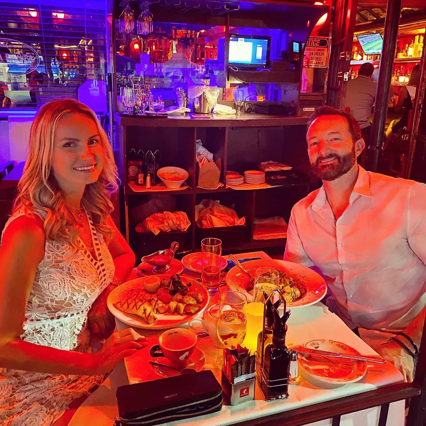 And a few days later they were on a date! They went to a speak-easy restaurant, called the Black Trumpet, secretly operating their indoor dining room in Huntington Beach. It was glorious. She was glamorous.