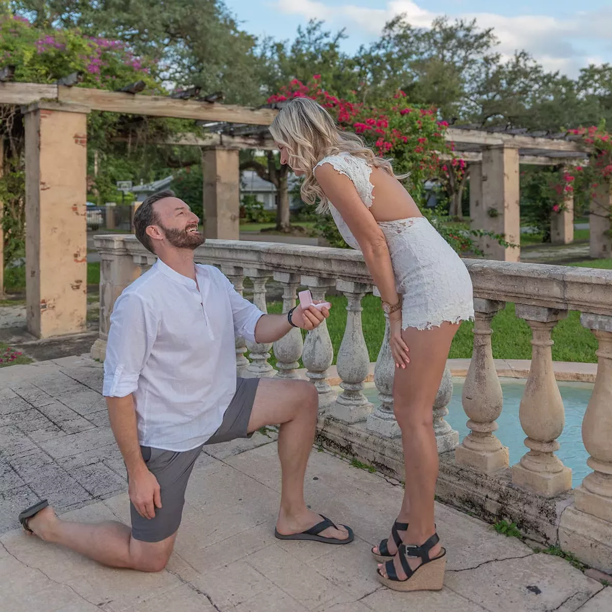 A few months later, Kris proposed to Olga in Miami – with the ring she designed! You can see some of the photos here from that day, and you can join us as we create more memories on our wedding day.